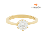 O Anel Solitário Banhado em Ouro 18k da Joias Beout transmite singularidade e eternidade. Ideal para expressar amor e estilo, este anel solitário é um presente memorável.