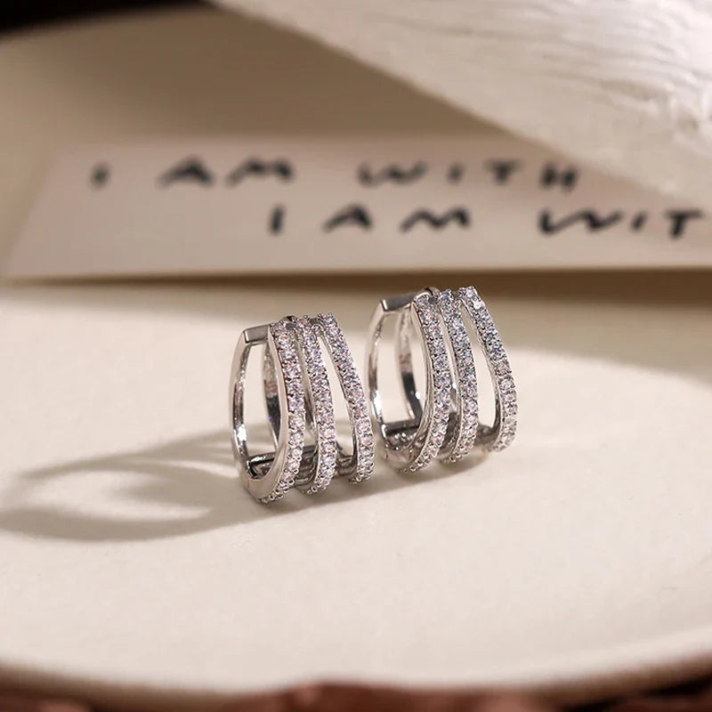 Brinco Triplo Cravejado com Zircônia