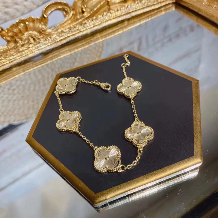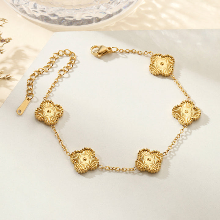 Embrace the charm of luck and elegance with the Lucy Clover Bracelet. Each clover is a delicate bloom, an emblem...