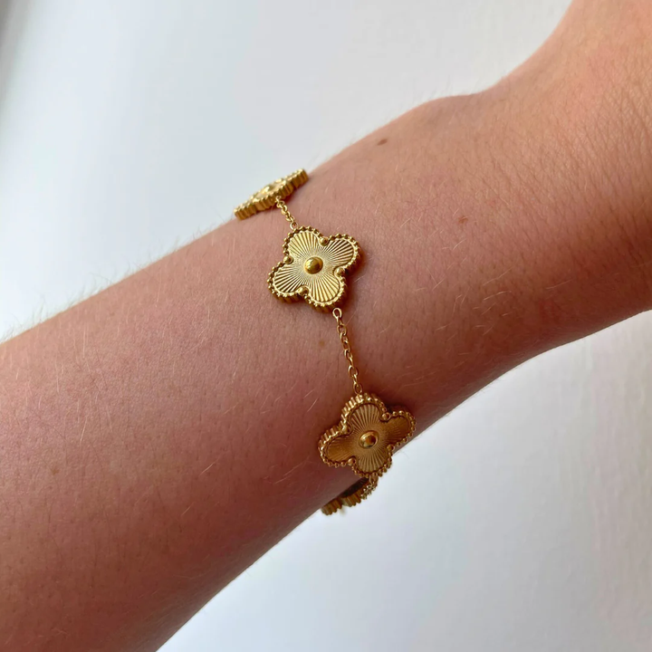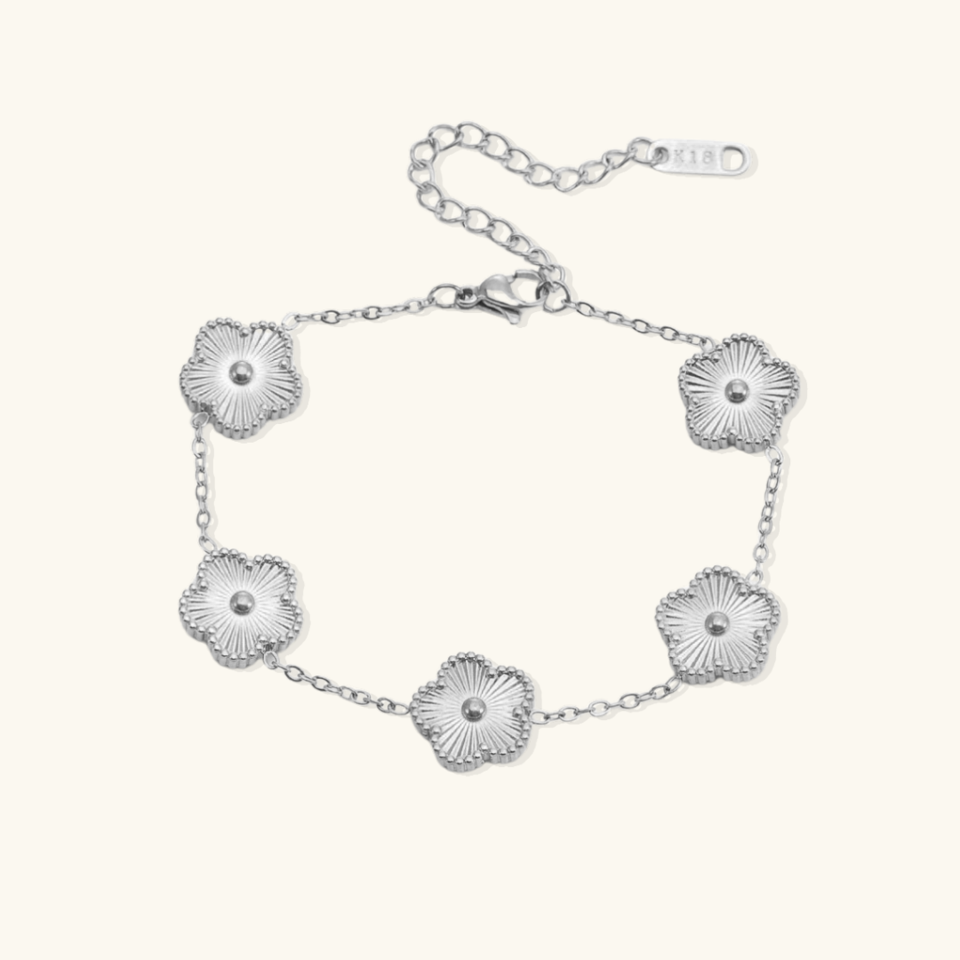 Embrace the charm of luck and elegance with the Lucy Clover Bracelet. Each clover is a delicate bloom, an emblem of hope and fortune crafted in radiant gold or silver. The textured petals catch the light with every movement, a shimmer that feels as natural as a warm breeze.