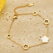 Esta Pulseira Elegante é Banhada em ouro 18K e é decorada com lindas flores delicadas. Perfeita para adicionar um toque de sofisticação e elegância ao seu look. Feita com materiais de alta qualidade, esta pulseira será uma peça duradoura em sua coleção de joias.