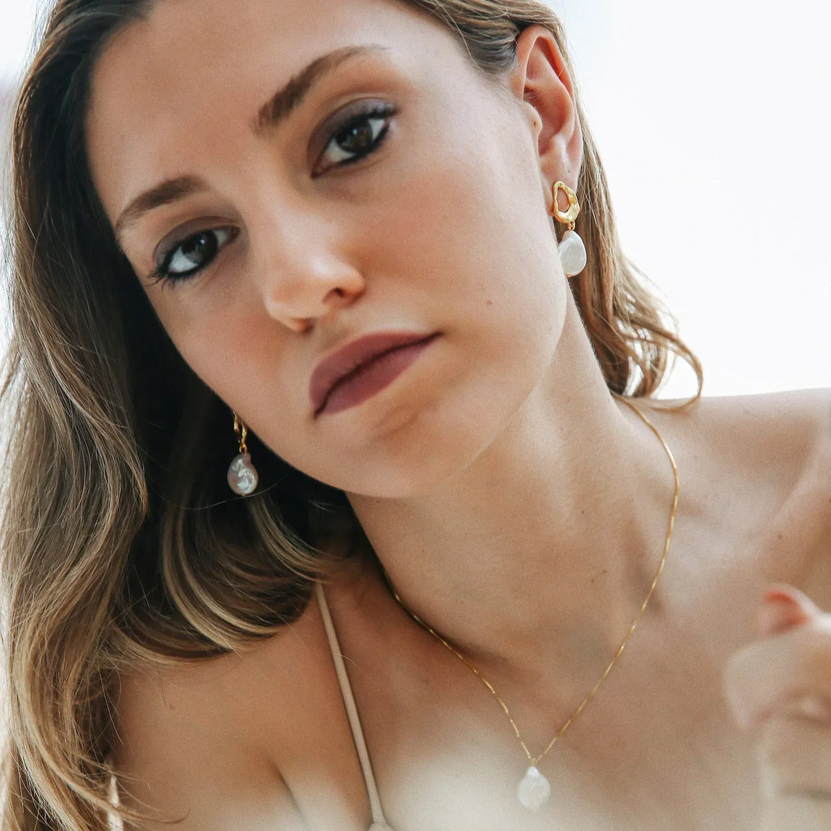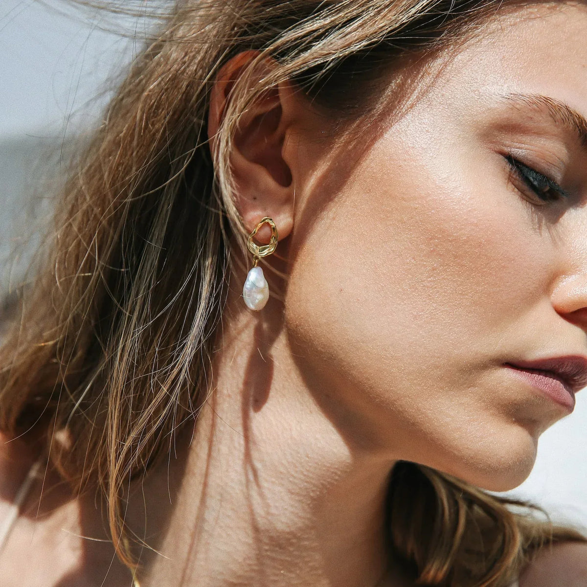 Step into the magic of evening elegance with the Twilight Pearl Earrings, a stunning blend of classic beauty and modern design. These exquisite earrings feature lustrous pearls delicately suspended from polished gold hoops, capturing the soft glow of twilight. The combination of smooth pearls and sleek gold creates a harmonious balance, adding a touch of sophistication to any ensemble.